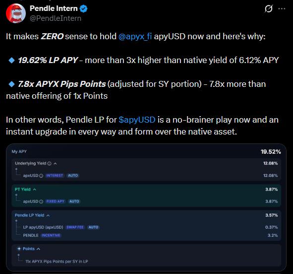 Pendle LP is an upgrade over raw apyUSD in every way.