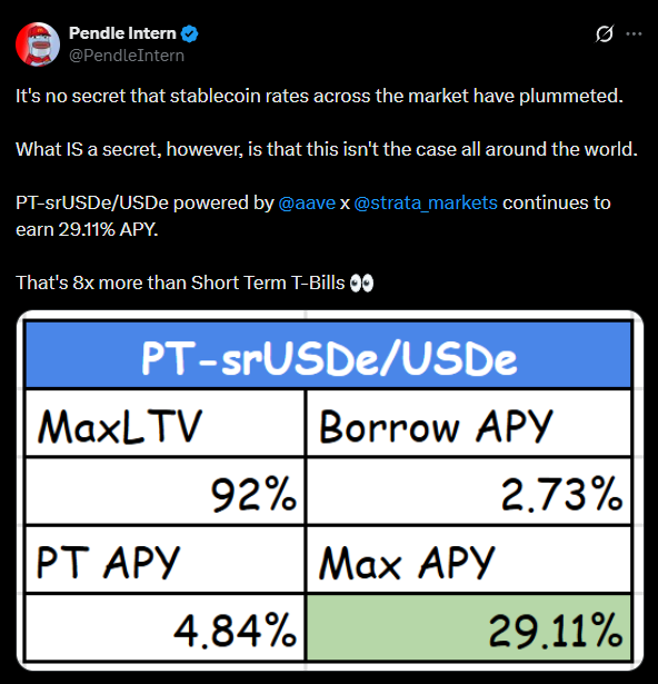 Pendle PT-srUSDe + Aave = 29% APY